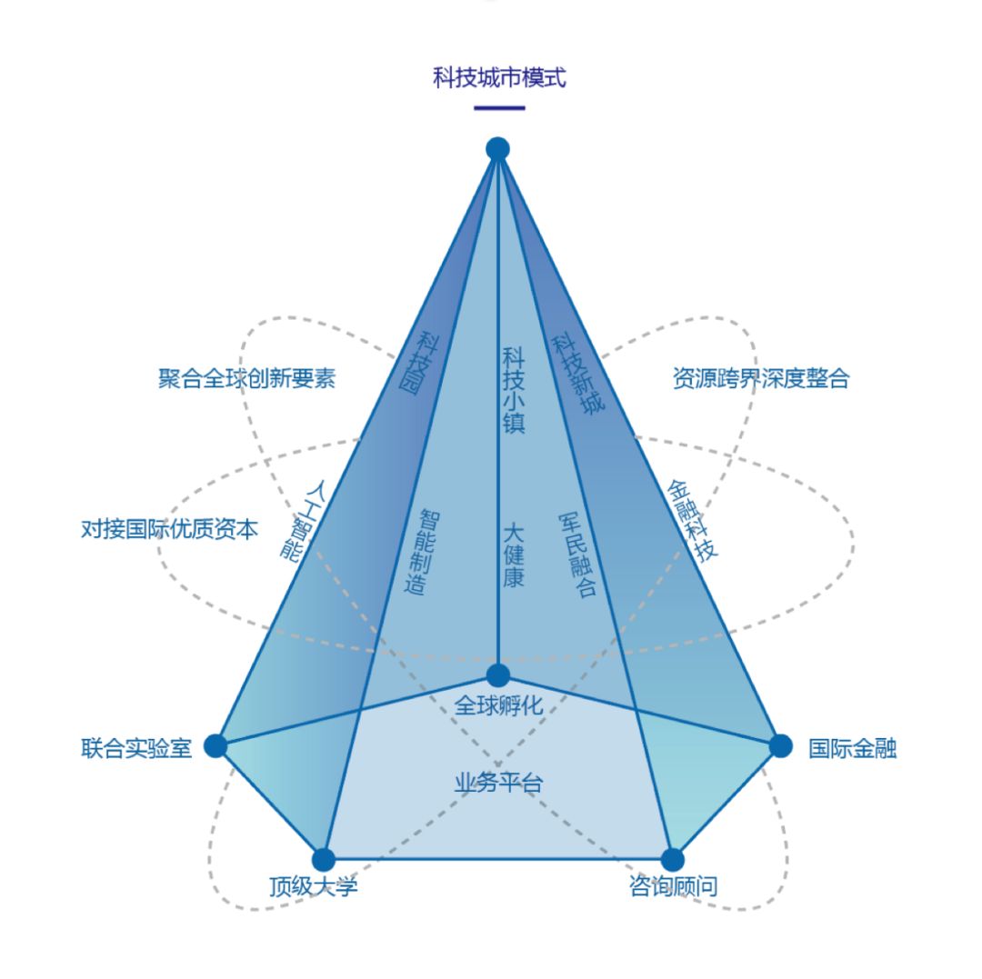 第一个是对接国际资本的能力。因为母公司在美国上市,所以有良好的国际信用评级和融资通道。第二个是聚合全球创新要素的能力。我们在海外成立了五个创新中心,目前运作得非常好,每年在国内举办超过20场中外项目的对接大会。第三个是各类资源要素深度整合的能力。因为我们是开发商出身,开发商本身整合能力强,我们在这方面比较有心得。鑫创既然锁定了科技和健康为主要产业发展方向,就把整个产业链从上到下——从标准制定、设计、生产、制造、到营销售后去深度整合。同时这也是在国际国内两个市场的深度整合。第一个“5”是聚焦五个产业方向。我们不是什么都能做。首先是金融科技。我们投了很多金融科技的企业,包括区块链行业专利数中国排第三、全球第五的企业——瑞卓喜投。中国第一是蚂蚁金服,第二是中国银行数字货币研究所,第三就是我们的瑞卓喜投。第二个是人工智能。我们也投了人工智能的公司爱接力,主要是作为物业服务的平台和端口。第三个是智能制造。鑫创已经在大连和佛山布局了以智能制造、先进制造为主的科技城市载体。第四个是军民融合。目前我们主要在贵州、陕西等地区与当地政府和相关企业合作打造军民融合小镇。最后一个是大健康。这是五个产业方向。