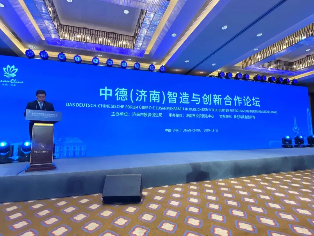 济南市政府副秘书长兼投资促进局局长张军、投资促进局副局长贺旭艳、鑫苑集团副总裁兼鑫创科技总裁陈立洋、西门子(中国)有限公司副总裁林泽波等嘉宾发表致辞。张军表示,此次论坛意义重大,济南市政府将会进一步为中德企业间的交流合作牵线搭桥,希望双方围绕合作机遇进行深入探讨和深度对接。贺旭艳介绍了济南与德国在多个领域的全方位合作,德国在济南的投资企业已达91家,西门子等跨国巨头均在济南落户扎根,力诺、圣泉等济南企业也到德国投资办厂,开展技术与贸易合作。陈立洋表示,鑫创科技十分看好济南的发展,目前正积极推进“济南国际智造科创谷”项目,以国际协同创新为抓手,聚焦AI智造平台服务和AI敏捷智造两大方向,着力将其打造成为全国智造协同创新“桥头堡”、山东智造产业升级“新引擎”和济南产城智慧融合“示范区”。林泽波表示,济南是西门子在中国第一批建立合资公司的城市,西门子产业的价值链全部在济南实现本土化生产,济南营商环境的日益改善大大推动了西门子在济南的良好发展。随后,德国ÄTZTEC和Berlin TECHAkademie分别进行了项目路演介绍,济南经济开发区等园区进行了重点推介。