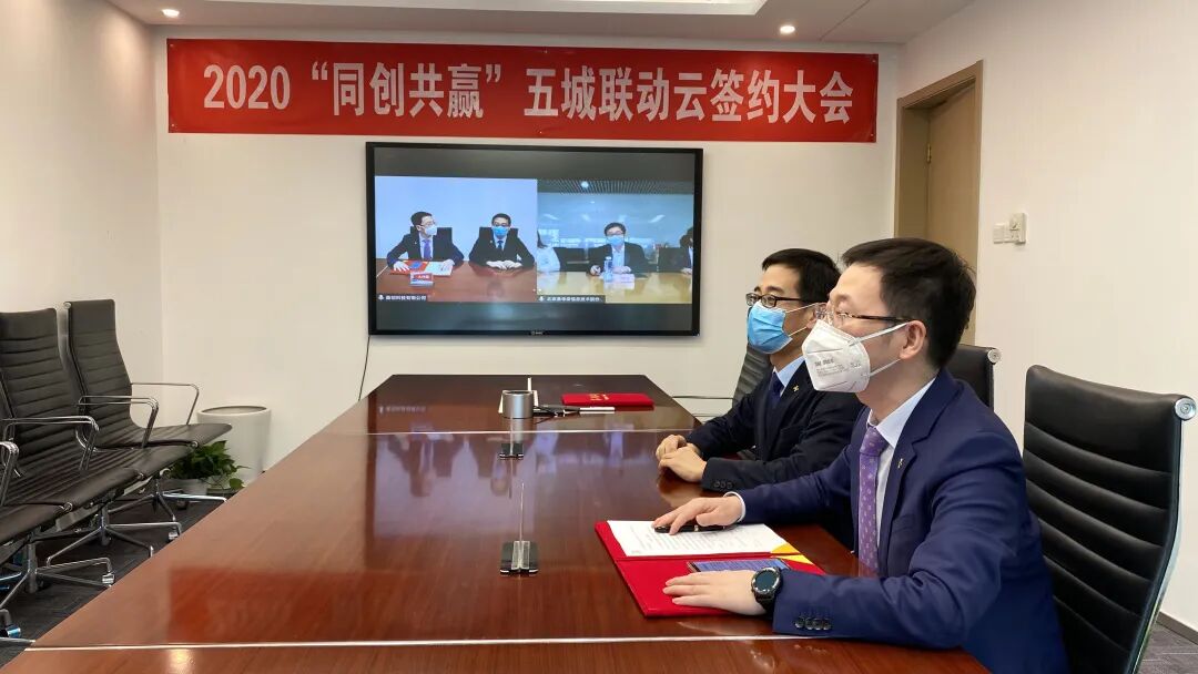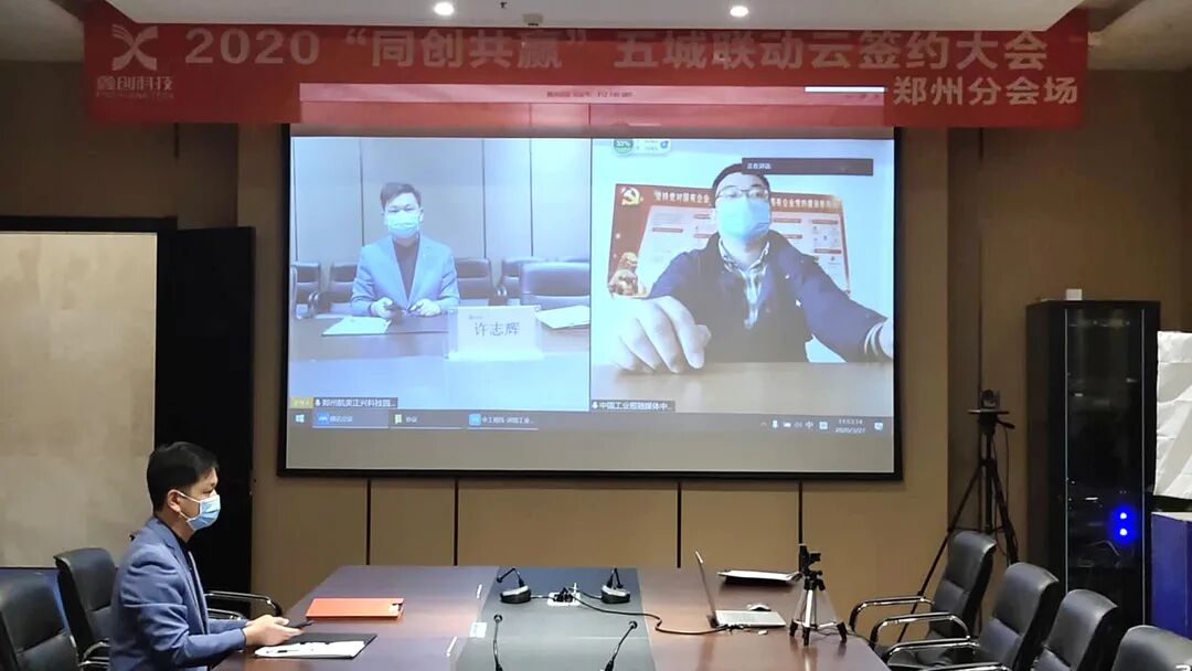 为了抓复工、促生产,3月27日,鑫创科技携手各生态伙伴共同举办2020“同创共赢”云签约大会。此次签约大会利用云平台实现了五城联动,分别在北京主会场以及郑州、大连、湖州、佛山4个分会场同步举行,共有20余个项目实现集中签约。本次活动既是响应国家“统筹做好疫情防控和经济社会发展”要求的积极尝试,也是鑫创科技培育园区产业发展、激发区域发展活力的重要举措,各方同舟共济,助力地方政府稳就业、保增长。