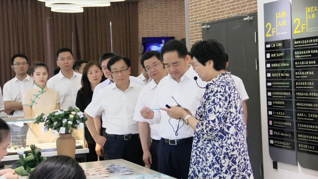 在丝绸小镇调研期间,马书记一行先后赴钱山漾文化交流中心、婚庆公园、丝绸小镇创意文化集市等考察点,认真听取各项目负责人的情况汇报。